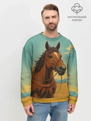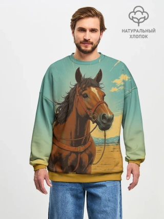 Мужской свитшот оверсайз хлопок / Loshad_v_pustine