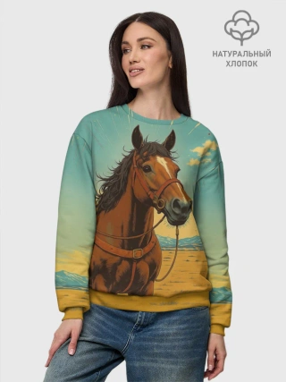 Женский свитшот базовый хлопок / Loshad_v_pustine