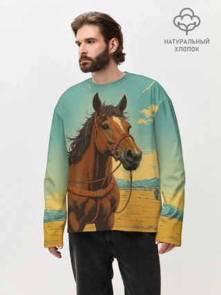 Мужской лонгслив оверсайз хлопок / Loshad_v_pustine