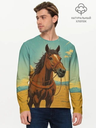 Мужской лонгслив хлопок / Loshad_v_pustine