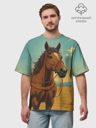 Мужская футболка оверсайз хлопок / Loshad_v_pustine