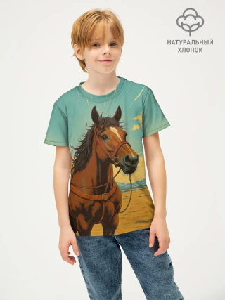 Детская футболка хлопок / Loshad_v_pustine