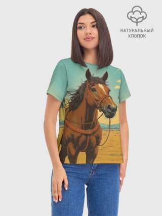 Женская базовая футболка хлопок / Loshad_v_pustine