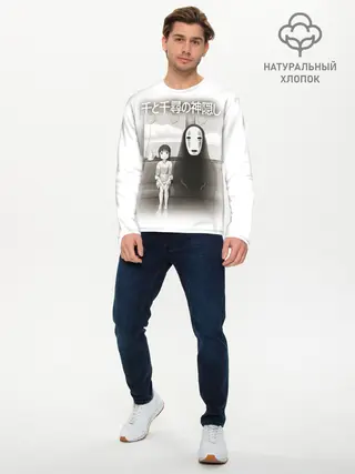 Мужской лонгслив базовый / Тихиро и Каонаси в поезде