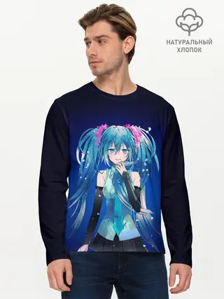 Мужской лонгслив базовый / Hatsune Miku на черном фоне