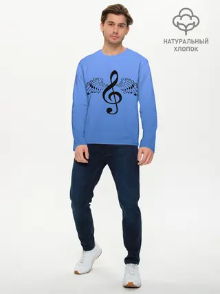 Мужской лонгслив базовый / Скрипичный ключ и крылья ноты