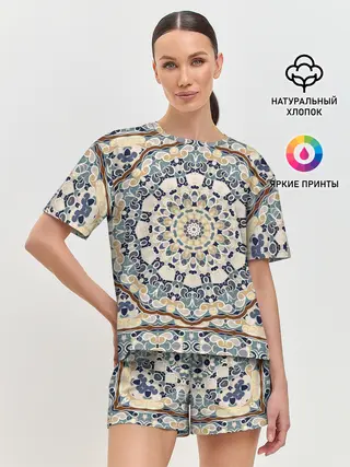 Женская футболка оверсайз / Черно-белый узор. Маки.