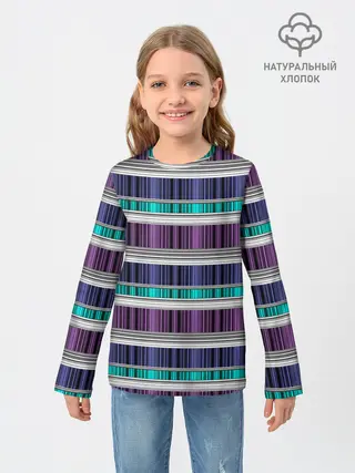 Детский лонгслив / Бирюзово-сиреневый полосатый