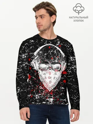 Мужской лонгслив базовый / Брызги Череп Хипстер Гранж