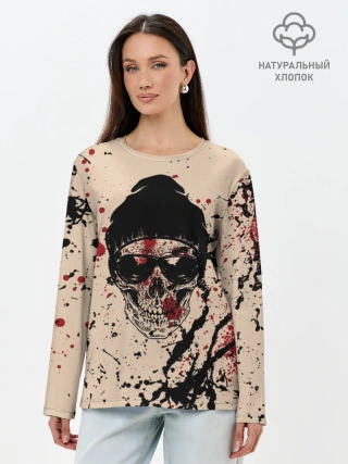 Лонгслив женский. Хлопок / Череп Хипстер Брызги Краски
