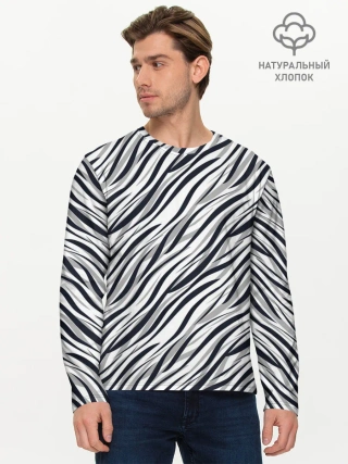 Мужской лонгслив базовый / Черно-белый полосатый тигровый