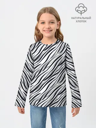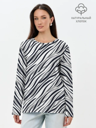 Лонгслив женский. Хлопок / Черно-белый полосатый тигровый