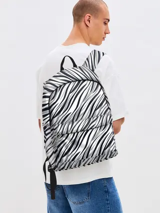 Рюкзак джинсовый / Черно-белый полосатый тигровый