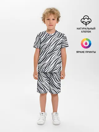 Детская пижама с шортами / Черно-белый полосатый тигровый