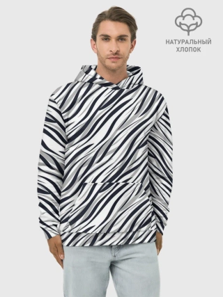 Худи мужской база хлопок / Черно-белый полосатый тигровый