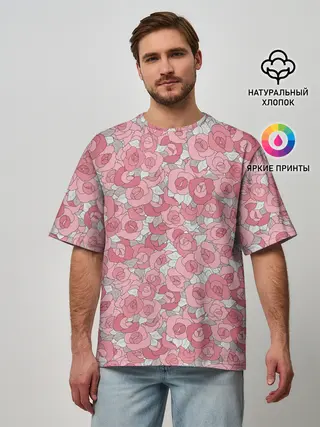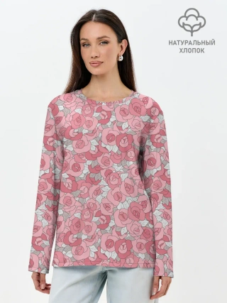 Лонгслив женский. Хлопок / Нежно коралловые розы