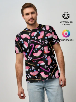Мужская базовая футболка / Новогодняя ночь, акварельный узор