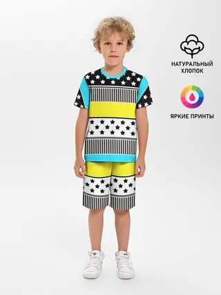Детская пижама с шортами / Неоновый яркий полосатый узор