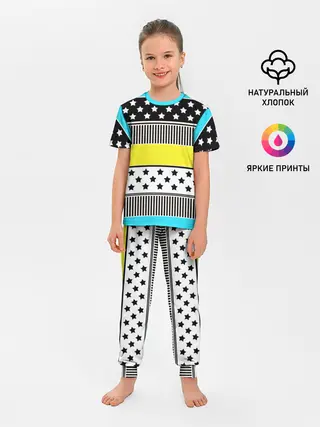 Детская пижама с брюками / Неоновый яркий полосатый узор