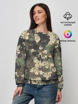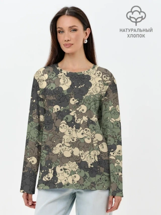 Лонгслив женский. Хлопок / Камуфляжный рисунок из черепов