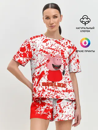 Женская пижама с шортами / Roblox piggy/Свинка Пигги.