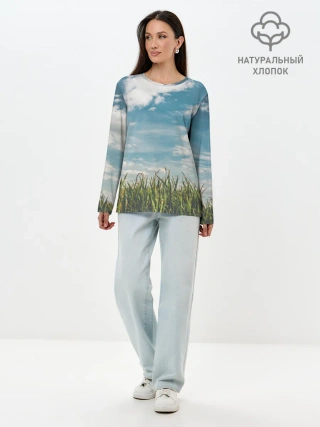 Лонгслив женский. Хлопок / Небушко и полюшко