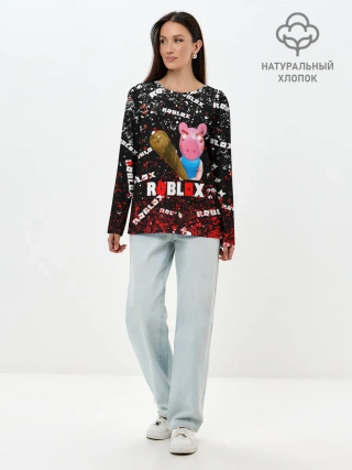 Лонгслив женский. Хлопок / Roblox piggy/Свинка Пигги.
