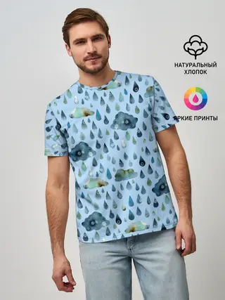 Мужская базовая футболка / Дождливая осень.Тучки и дождь