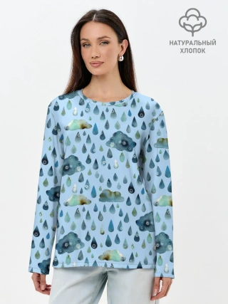 Лонгслив женский. Хлопок / Дождливая осень.Тучки и дождь