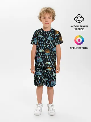Детская пижама с шортами / Дождливая осень.Солнце, облака