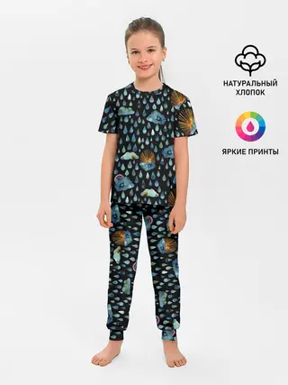 Детская пижама с брюками / Дождливая осень.Солнце, облака