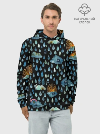 Худи мужской база хлопок / Дождливая осень.Солнце, облака
