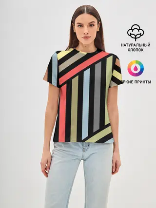 Женская базовая футболка / Абстрактный полосатый узор