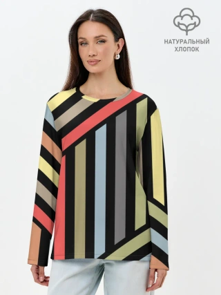 Лонгслив женский. Хлопок / Абстрактный полосатый узор