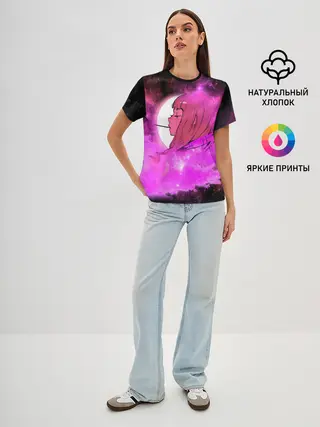 Женская футболка оверсайз / Аниме Девушка | Розовый Космос