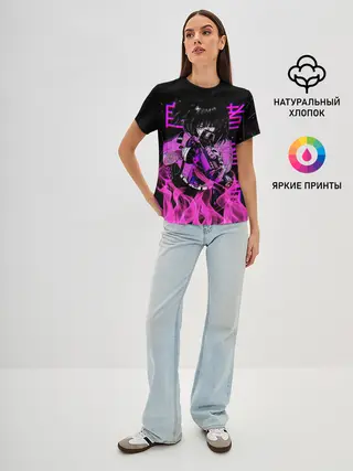 Женская базовая футболка / Аниме Девушка Киберпанк