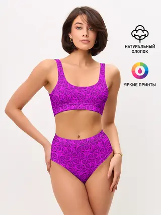 Женские топ и трусы / Яркий цветочный неоновый узор
