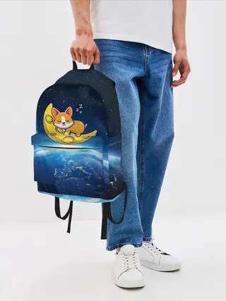 Рюкзак джинсовый / Лунный корги | Space Corgi