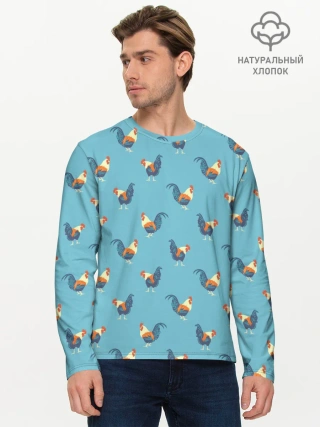 Мужской лонгслив базовый / Петушки паттерн