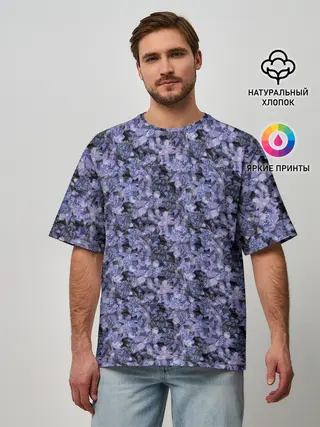 Мужская футболка оверсайз / Сине-фиолетовый цветочный узор