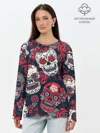 Лонгслив женский. Хлопок / Мексиканские черепа