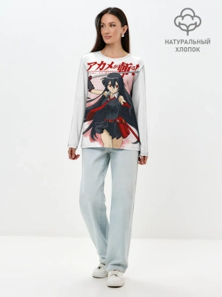 Лонгслив женский. Хлопок / Акаме атакует на белом фоне