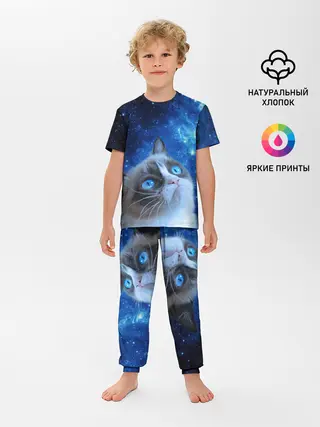 Детская пижама с брюками / Сердитый кот в космосе