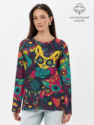 Лонгслив женский. Хлопок / Кошачий День Мёртвых