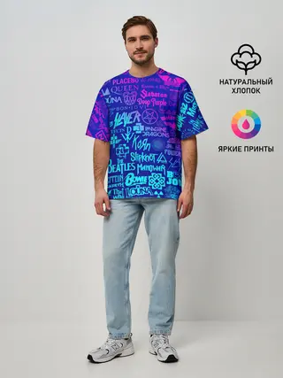 Мужская футболка оверсайз / ЛОГОТИПЫ РОК ГРУПП