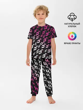 Детская пижама с брюками / Розовобелый паттерн джоджо