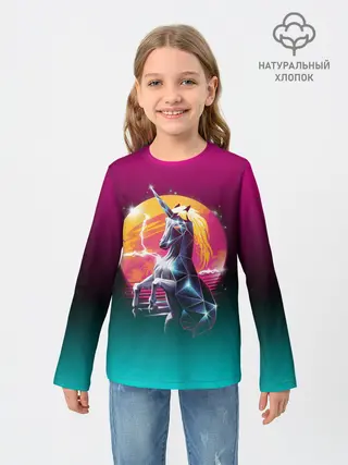 Детский лонгслив / РЕТРО ЕДИНОРОГ НЕОН