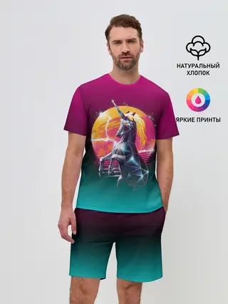 Мужской костюм с шортами / РЕТРО ЕДИНОРОГ НЕОН