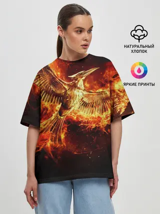 Женская футболка оверсайз / Феникс в огне