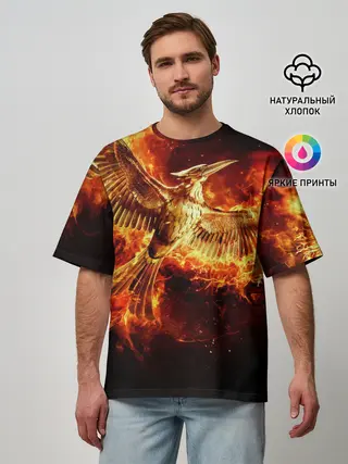 Мужская футболка оверсайз / Феникс в огне